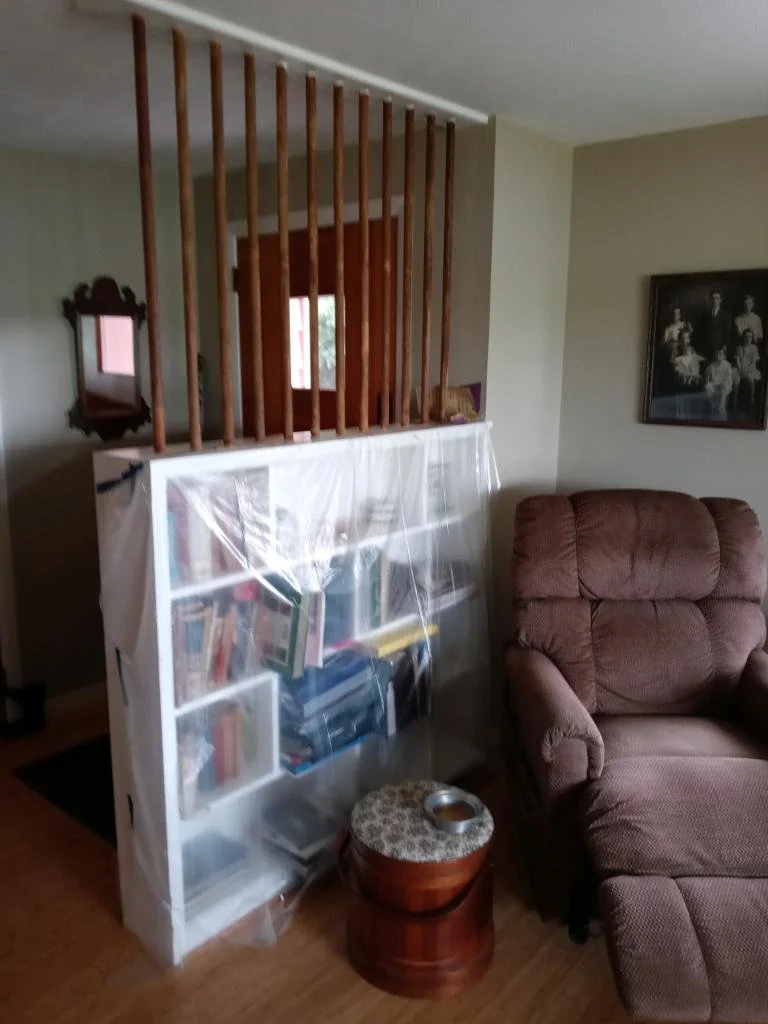 Residential interior update including paint, drywall repair, trim work and textured ceiling repair. The residence was previously a rental and required extensive repairs and stripping of the woodwork to begin.